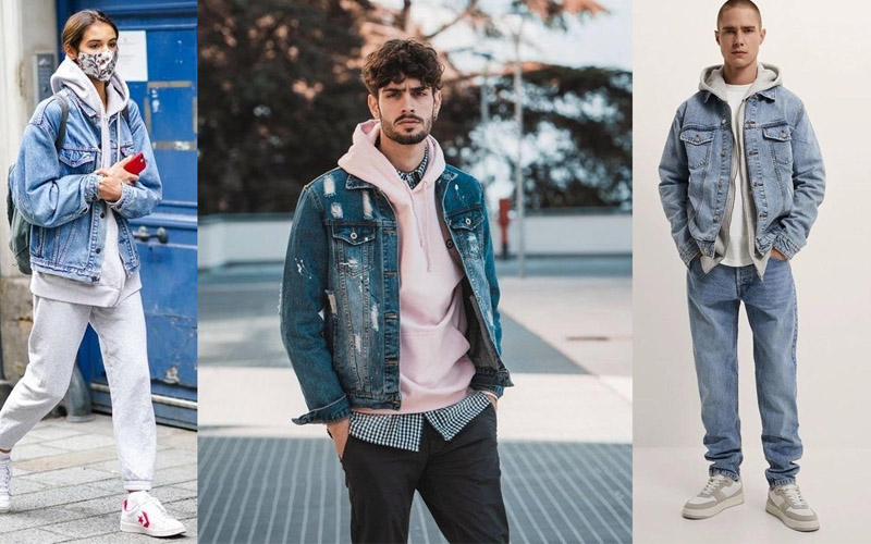 از مزایای پوشیدن کت جین راحت ست شدن آن با لباس هایی همچون هودی است. همچنین ست کردن هودی با بلوزهای بافتنی یک استایل شیک و بی نقص به شما ارائه می دهد. کت جین جزء جدایی ناپذیر استایل کژوال محسوب می شود. ترکیب هودی، کت جین و یک شلوار جین یا کتان تیره استایلی هماهنگ و جذاب را رقم می زند. حتی شما می توانید یک هودی سفید را با کت جین آبی روشن هماهنگ کنید. در چنین استایلی کفش اسنیکرز سفید یک انتخاب ایده آل محسوب می شود. توصیه می شود در این ترکیب پاییزی از رنگ های روشن و خنثی و اکسسوری های ساده همچون کلاه کشی بافت یا یک شال گردن خاکستری استفاده شود.