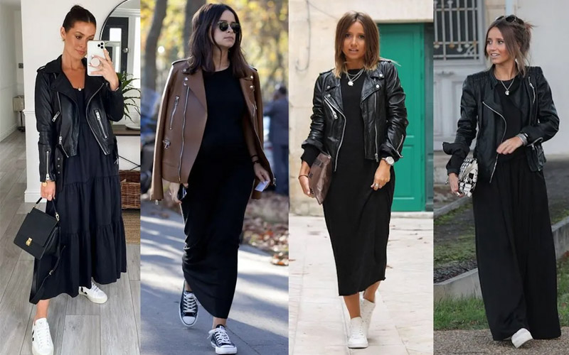 ست کردن یک کت چرم کوتاه با شلوار جین اسکینی یا شلوار چرم تنگ یک هماهنگی زیبا در استایل پاییزی شما ایجاد می کند. همچنین می توانید در زیر کت چرم کوتاه از یک هودی بلند استفاده کنید. یک استایل نیمه رسمی زمانی کامل می شود که از پوشیدن کفش نیم بوت یا بوت های بلند غافل نشوید. اگر پوشیدن هودی رنگی را می پسندید بهتر است آن را با یک کت چرمی مشکی ست کنید. در چنین استایلی می توانید از شلوار جین اسکینی به رنگ مشکی یا ذغالی هم بهره ببرید.