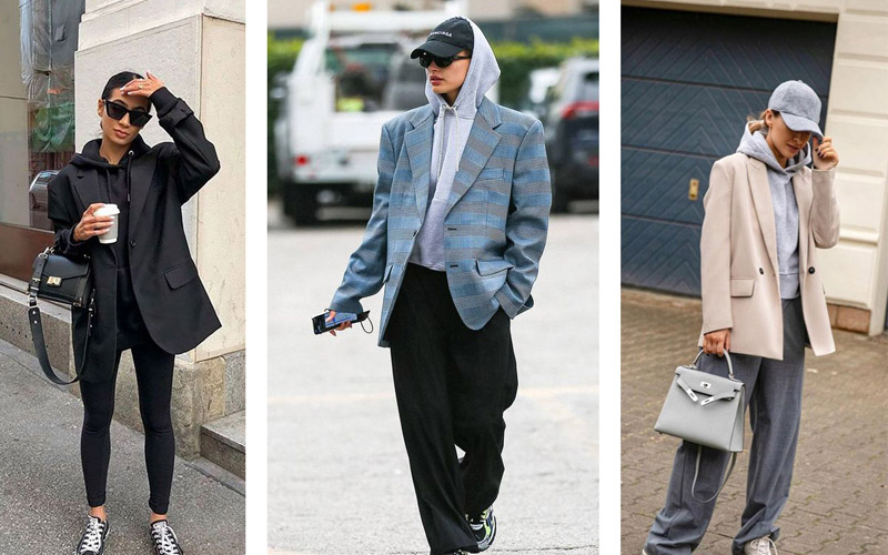 ترکیب هودی ساده و کت اسپرت اورسایز را حتما در استایل کژوال پاییزی خود بگنجانید. هودی در این استایل ظاهری نیمه رسمی پیدا می کند ولی راحتی استایل شما همچنان پابرجا است. برای تکمیل این استایل پاییزی می توانید از شلوار پارچه ای راسته یا شلوار جین تیره، کفش پاشنه دار یا بوت ساق کوتاه استفاده کنید. این استایل برای مهمانی های غیررسمی یک گزینه عالی محسوب می شود.